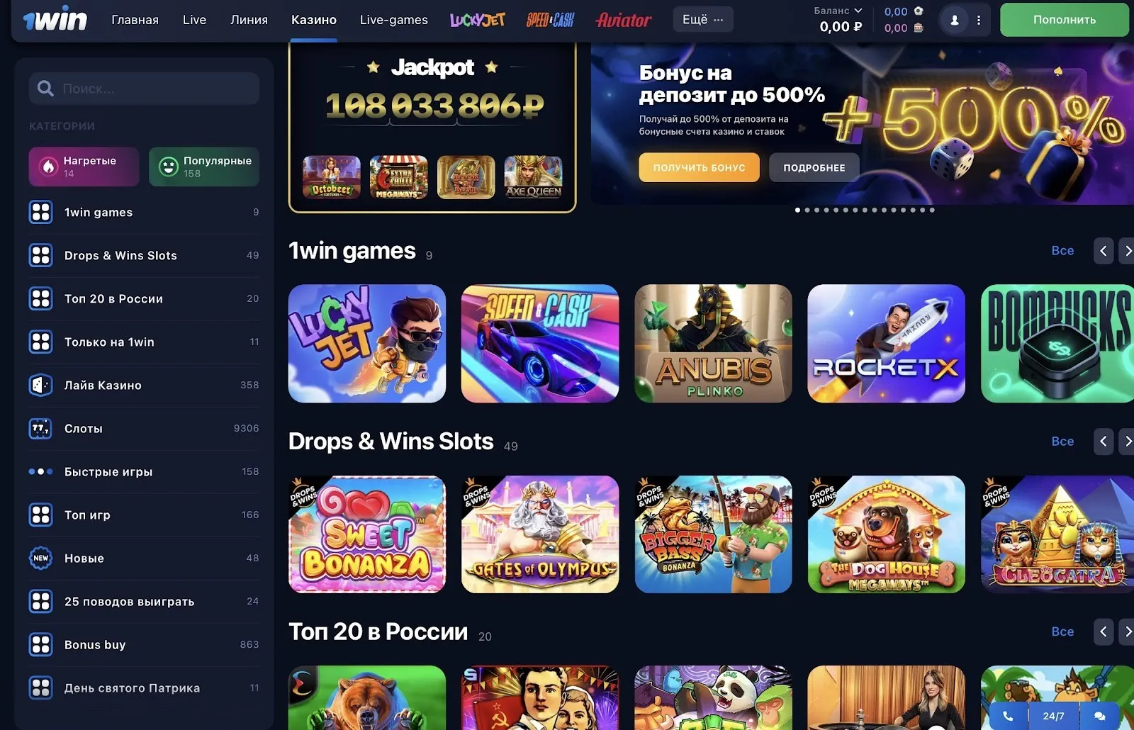 Играю в слоты 1 вин, хотя изначально пришел на платформу для ставок на спорт. В казино куча игр, причем очень много интересных новинок с Bonus Buy и Megaways. Очень радует отзывчивая поддержка! Было пару вопросов. В чате ответили через пару секунд. Круто!